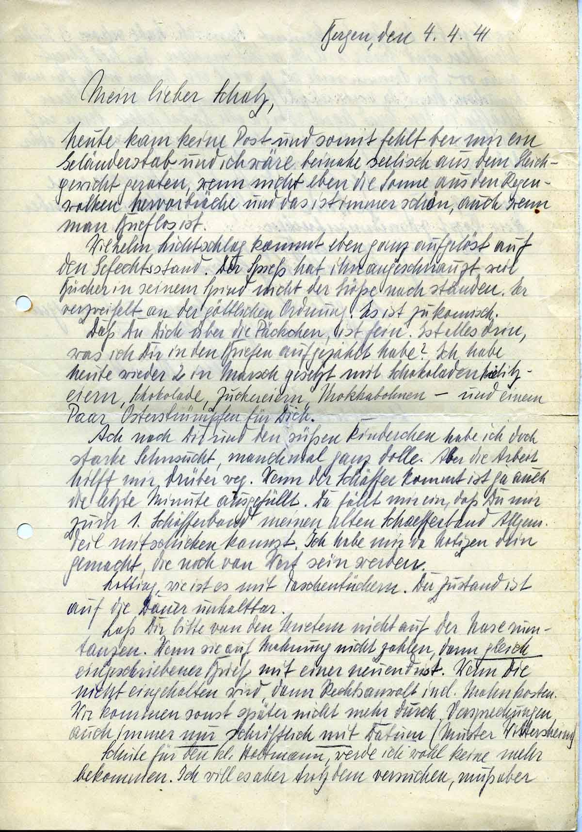 Harald Endemann an seine Frau Charlotte, 4. April 1941