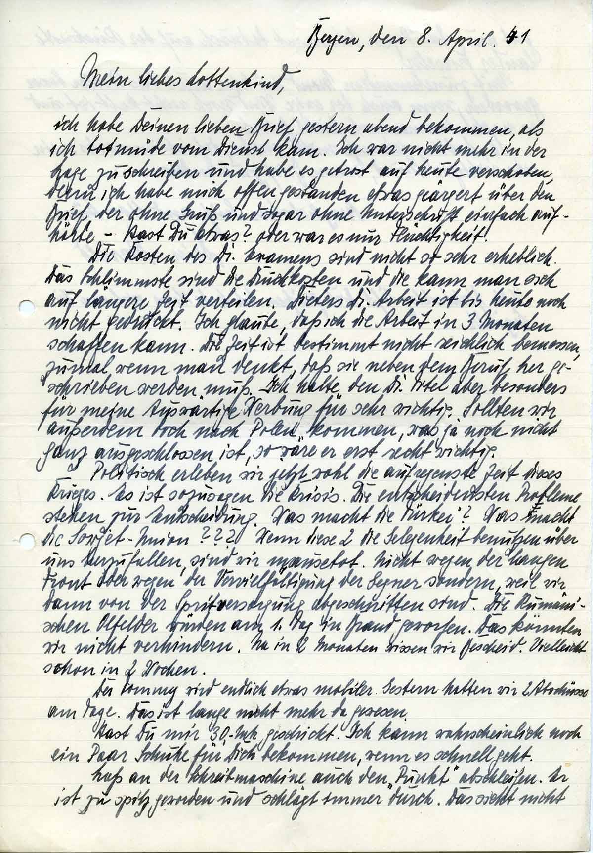 Harald Endemann an seine Frau Charlotte, 8. April 1941
