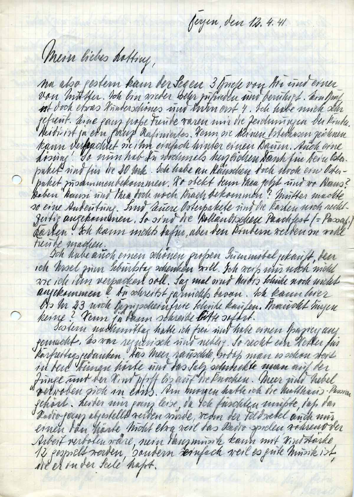 Harald Endemann an seine Frau Charlotte, 12. April 1941