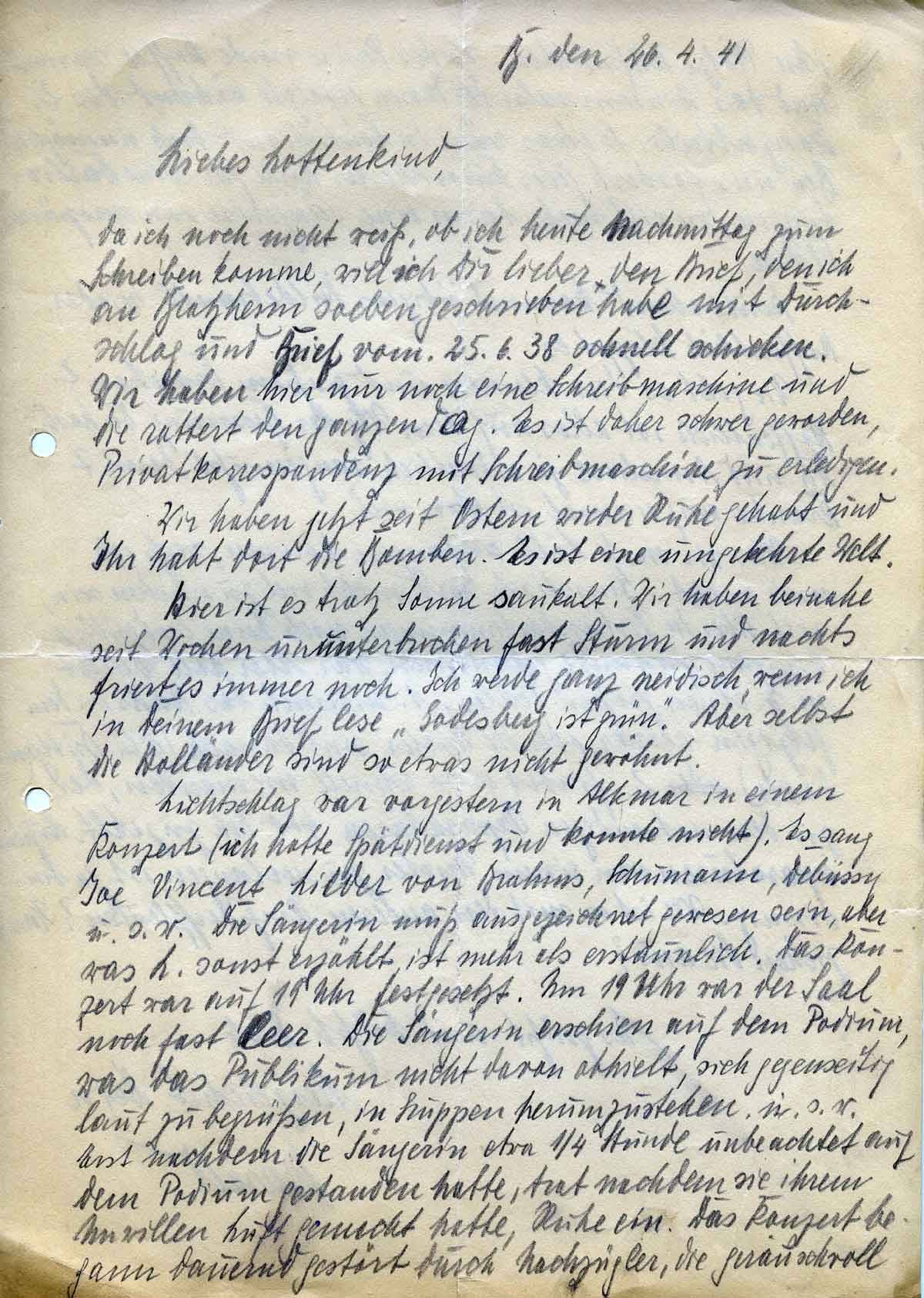 Wir haben hier nur noch eine Schreibmaschine und die rattert den ganzen Tag. Es ist daher schwer geworden, Privatkorrespondenz mit Schreibmaschine zu erledigen.