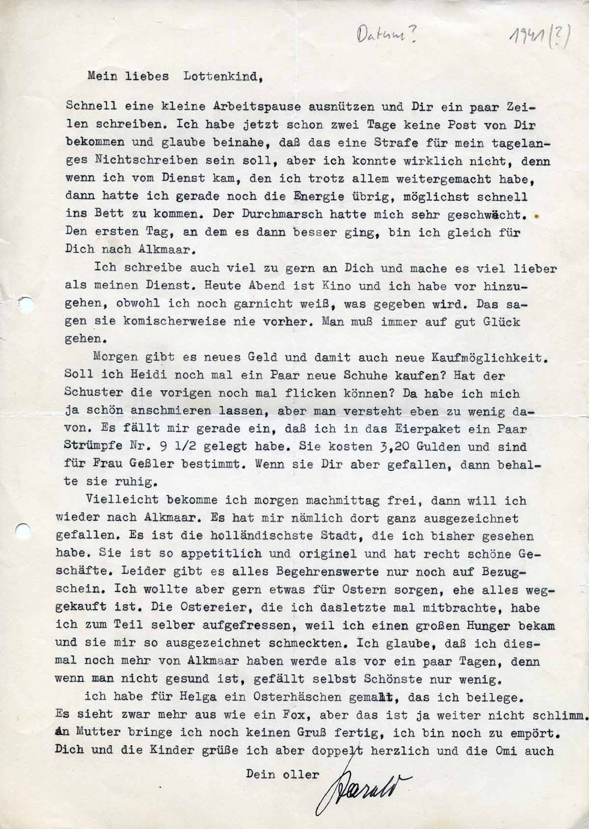 Harald Endemann an seine Frau Charlotte, undatiert (1941)