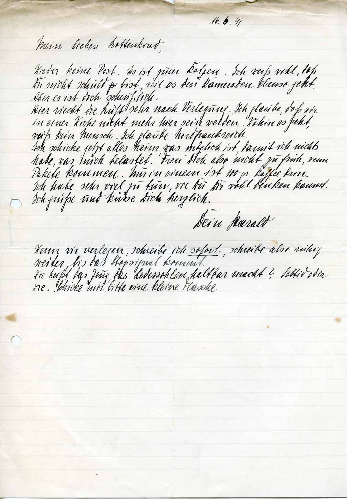 Harald Endemann an seine Frau Charlotte, 16. Juni 1941