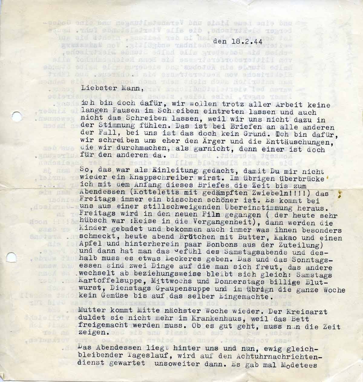 Charlotte Endemann an ihren Mann Harald, 18. Februar 1944