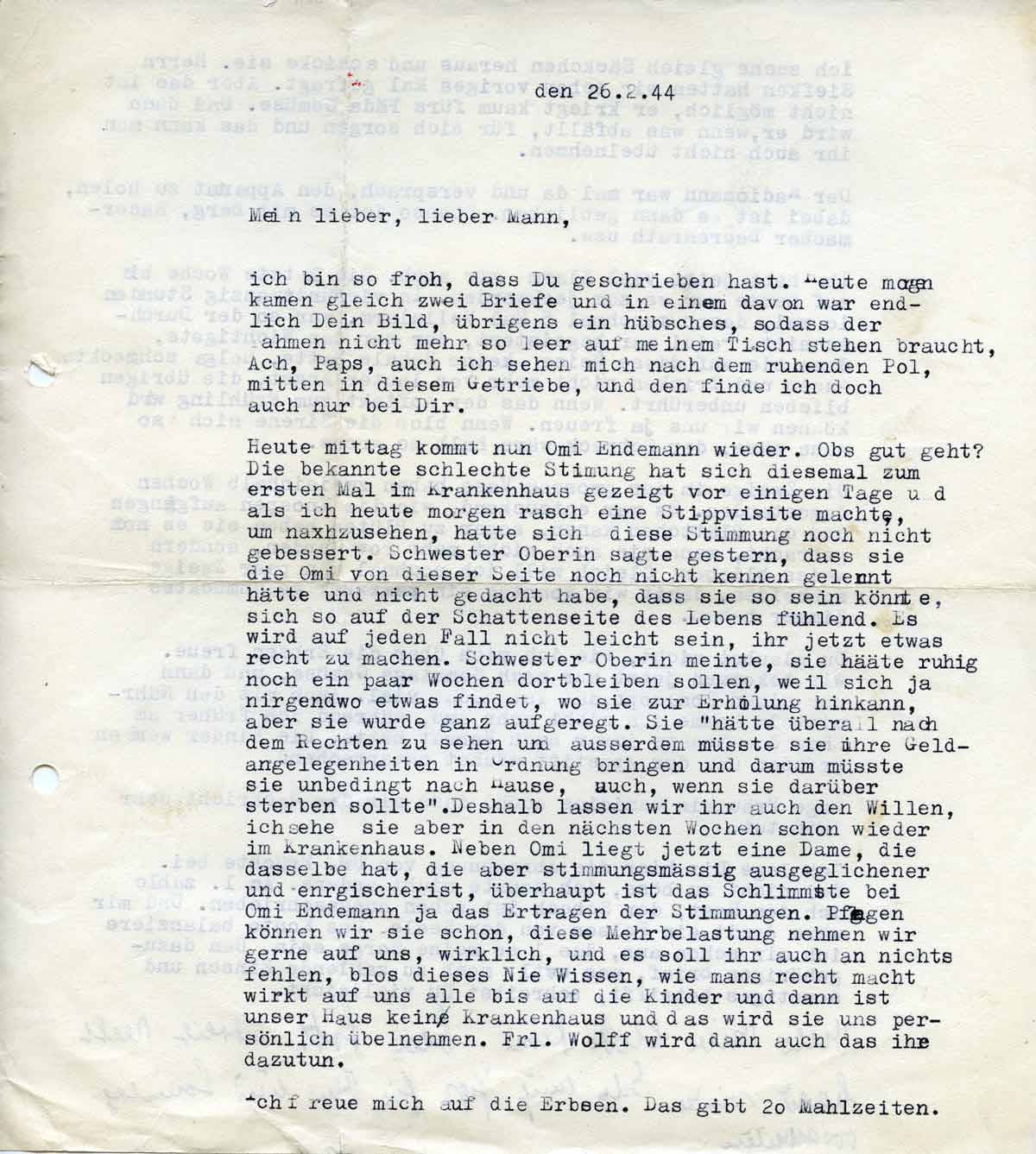 Charlotte Endemann an ihren Mann Harald, 26. Februar 1944