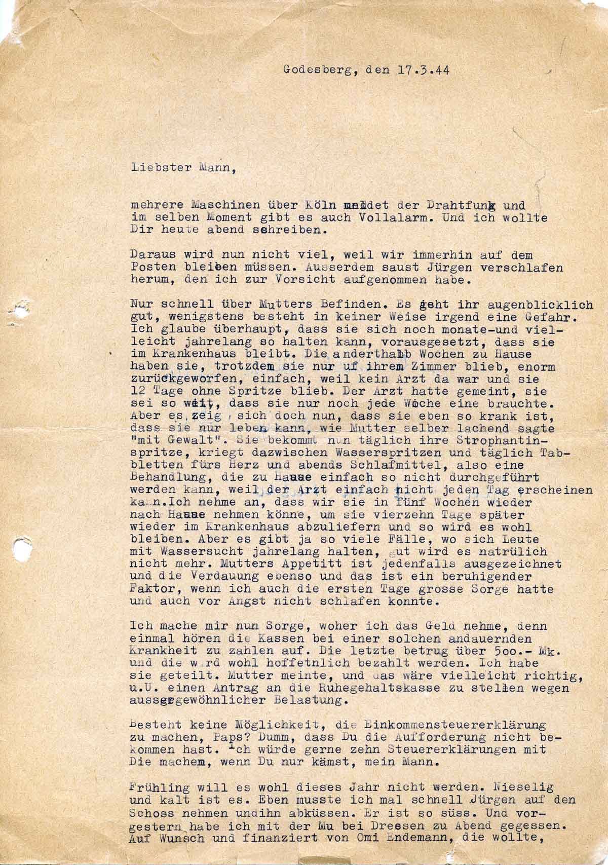 Charlotte Endemann an ihren Mann Harald, 17. März 1944