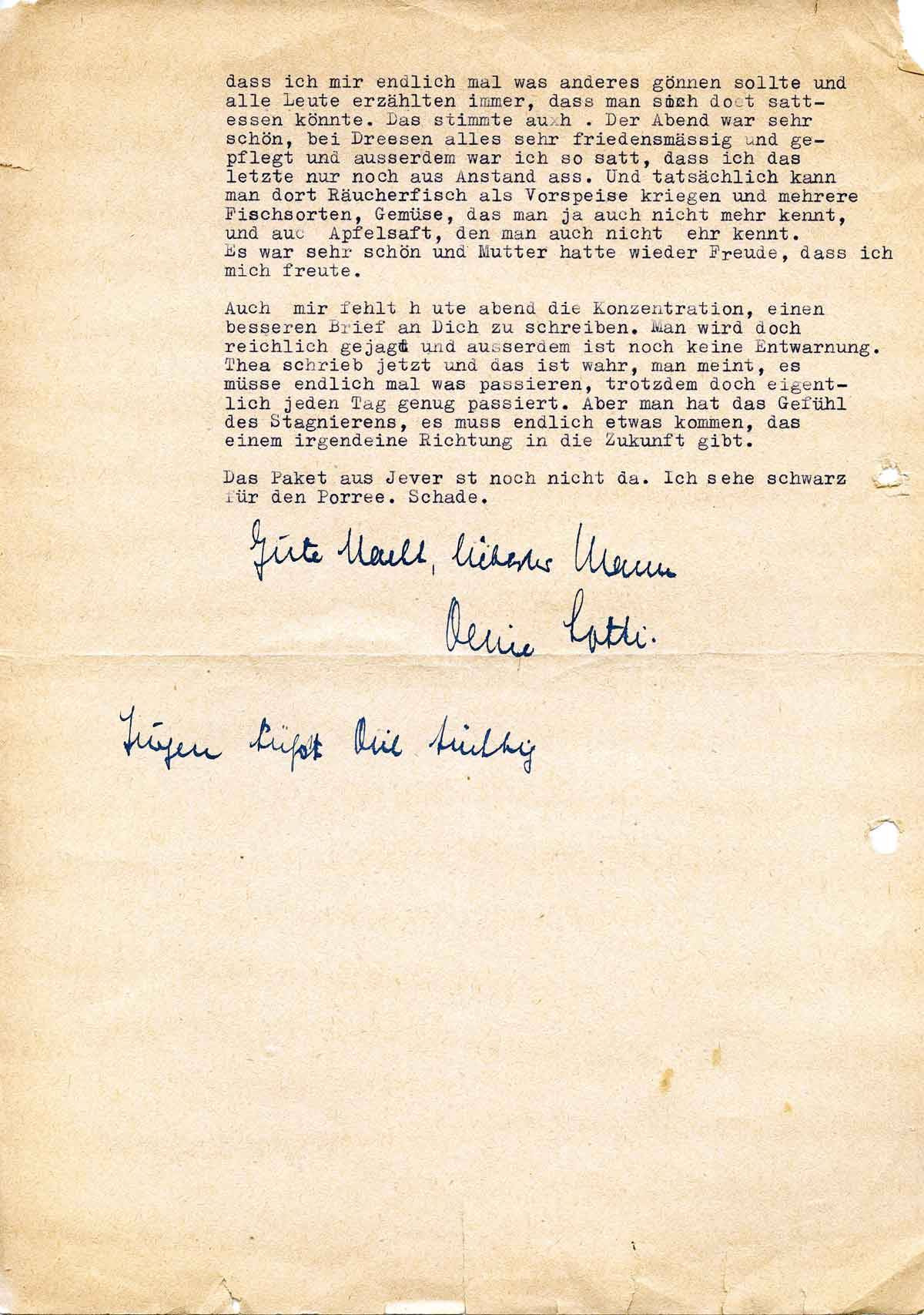 Das Paket aus Jever ist noch nicht da. Ich sehe schwarz für den Porree. Schade. Gute Nacht, liebster Mann, Deine Lotti