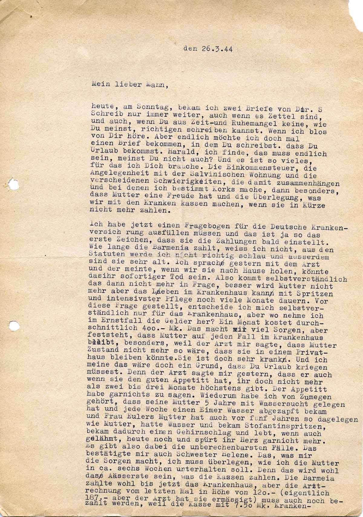 Charlotte Endemann an ihren Mann Harald, 26. März 1944