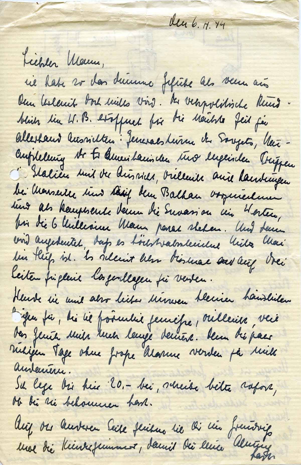Charlotte Endemann an ihren Mann Harald, 6. April 1944