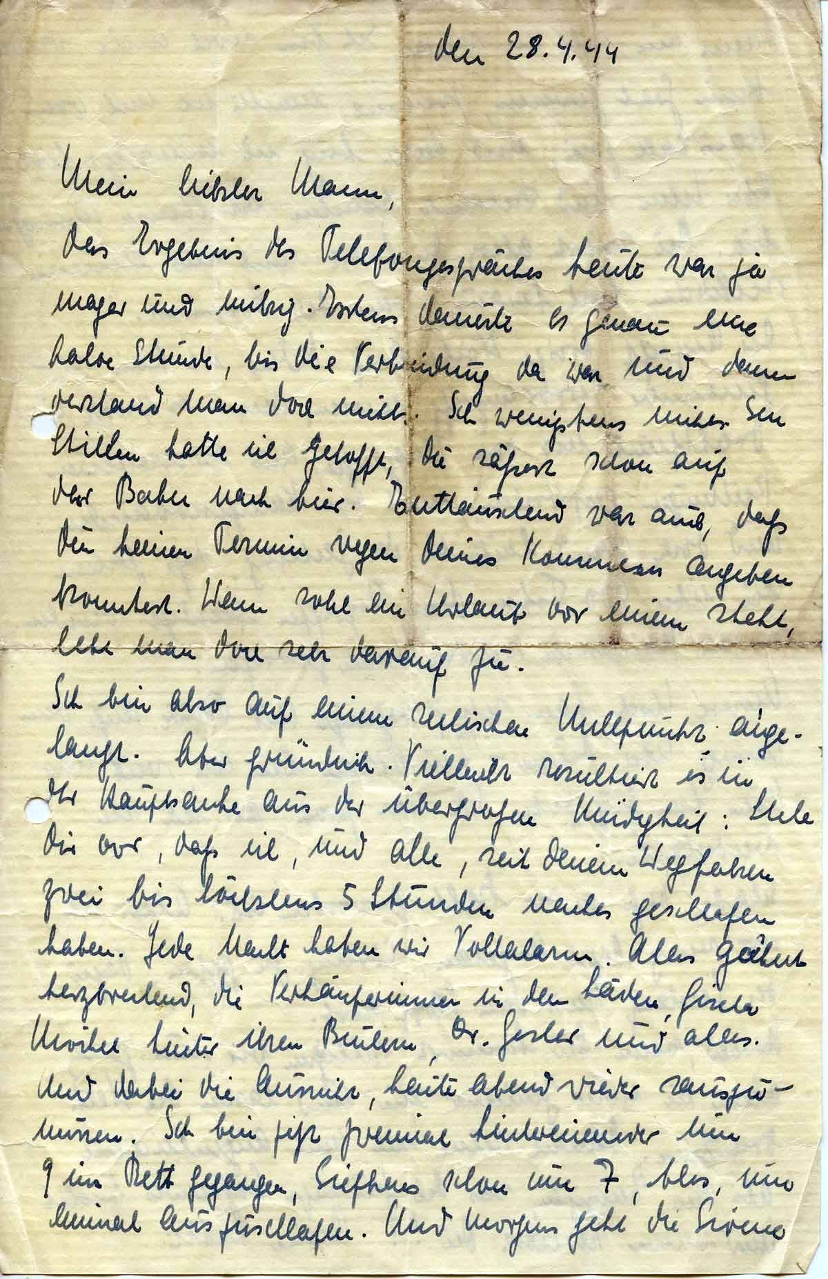 Charlotte Endemann an ihren Mann Harald, 28. April 1944