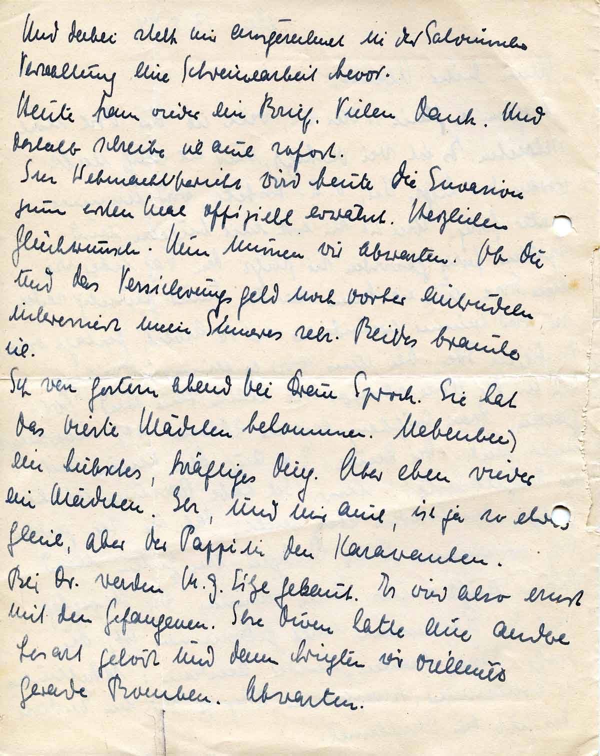 Heute kam wieder ein Brief. Vielen Dank. Und deshalb schreibe ich auch sofort.