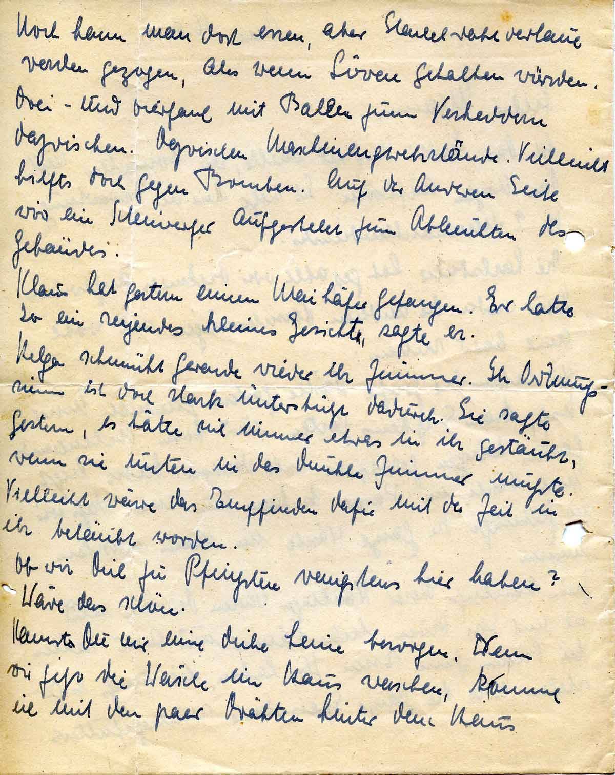 Noch kann man da essen, aber Stacheldrahtverhaue werden gezogen, als wenn Löwen gehalten würden. Drei- und vierfach mit Ballen zum Verheddern dazwischen. Dazwischen Maschinengewehrstände. Vielleicht hilft's doch gegen Bomben. Auf der anderen Rheinseite wird ein Scheinwerfer aufgestellt zum Absuchen des Gebäudes.