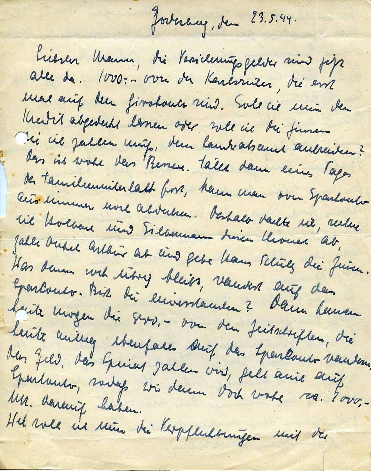Charlotte Endemann an ihren Mann Harald, 23. Mai 1944