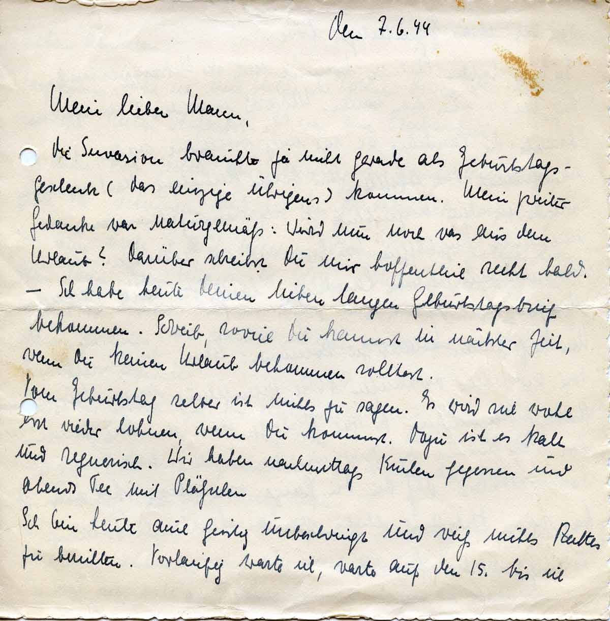 Charlotte Endemann an ihren Mann Harald, 7. Juni 1944