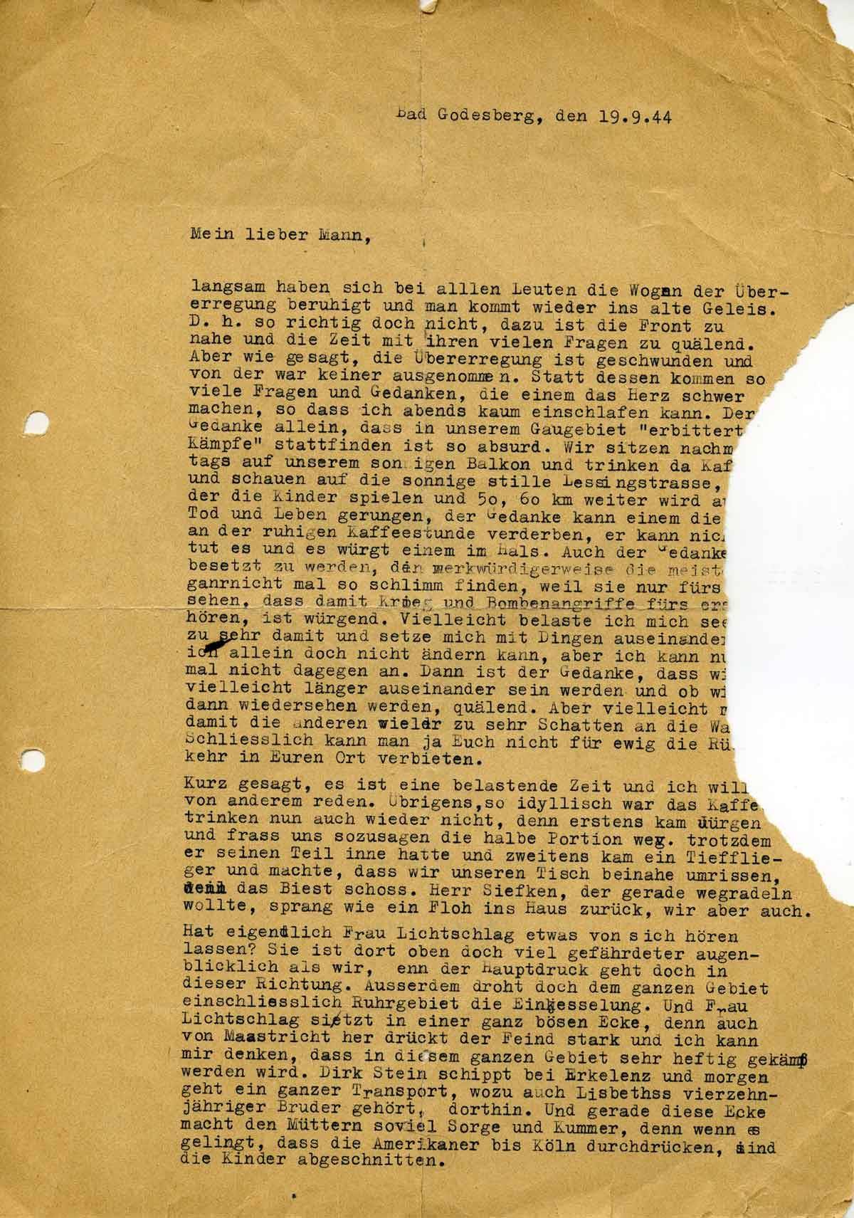 Charlotte Endemann an ihren Mann Harald, 19. September 1944