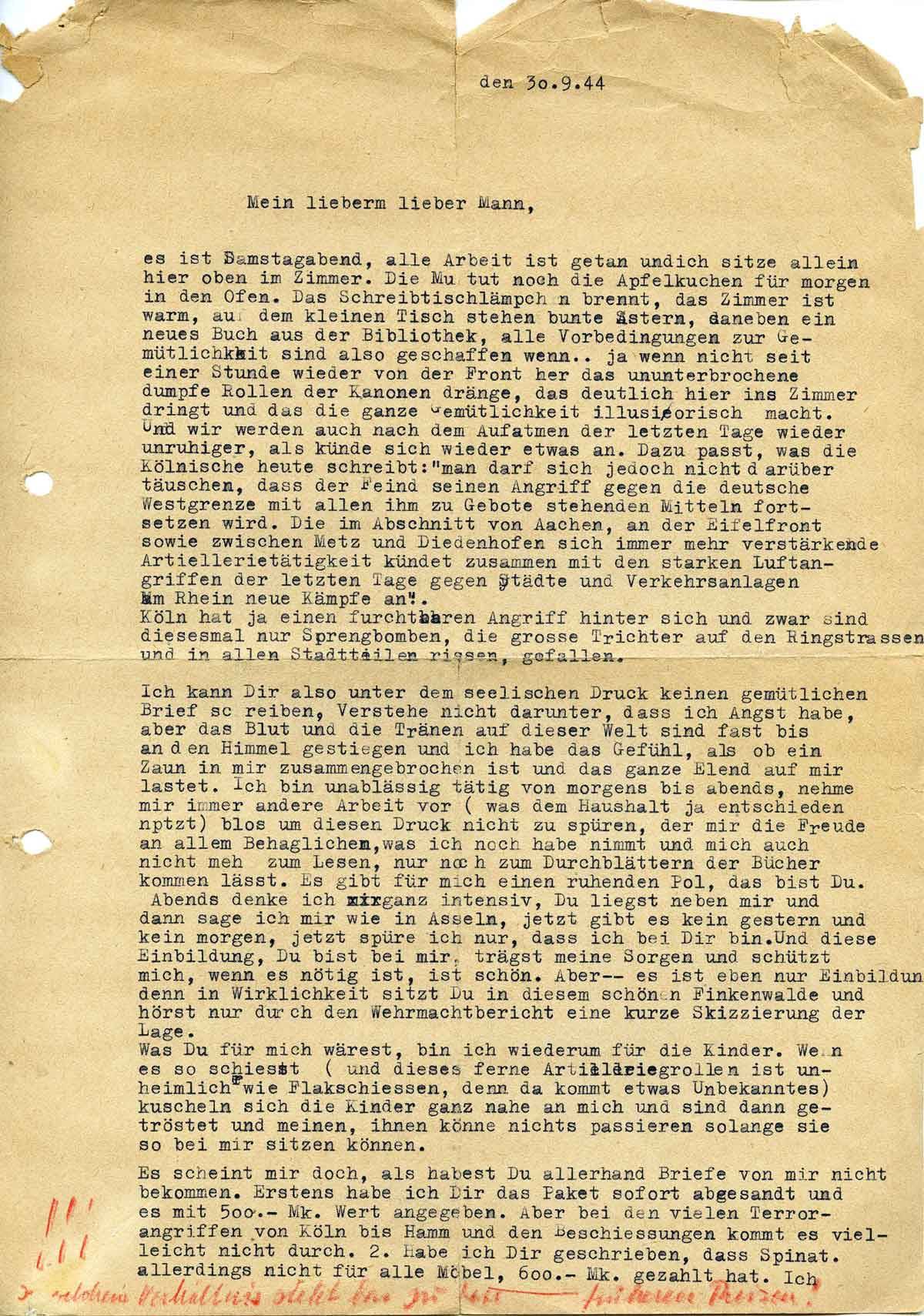 Charlotte Endemann an ihren Mann Harald, 30. September 1944