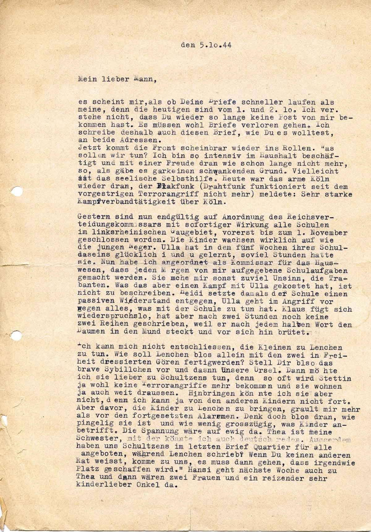 Charlotte Endemann an ihren Mann Harald, 5. Oktober 1944