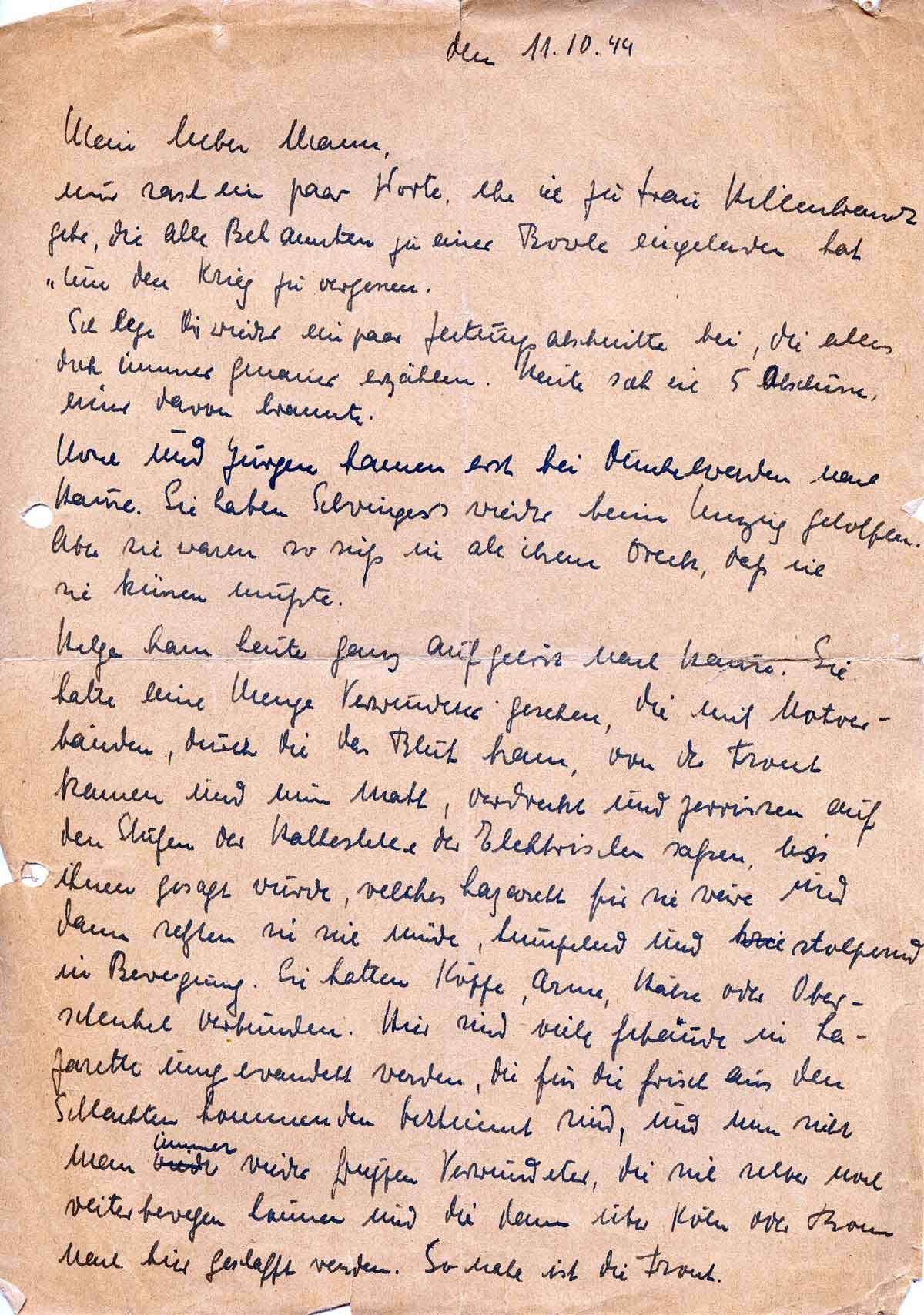 Charlotte Endemann an ihren Mann Harald, 11. Oktober 1944