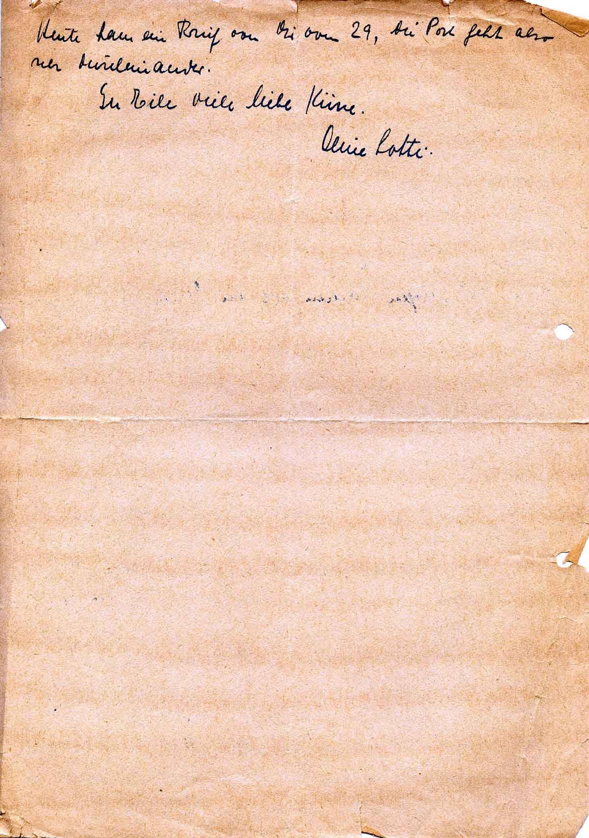 Nur rasch ein paar Worte, ehe ich zu Frau Hillenbrand gehe, die alle Bekannten zu einer Bowle eingeladen hat, „um den Krieg zu vergessen“. Ich lege Dir wieder ein paar Zeitungsausschnitte bei, die alles doch immer genauer erzählen. Heute sah ich fünf Abschüsse, einer davon brannte.