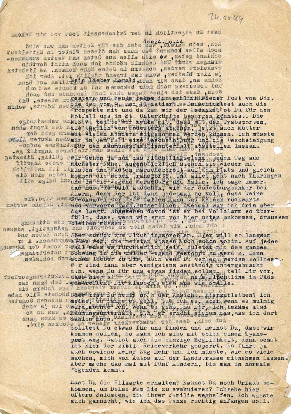 Charlotte Endemann an ihren Mann Harald, 24. Oktober 1944