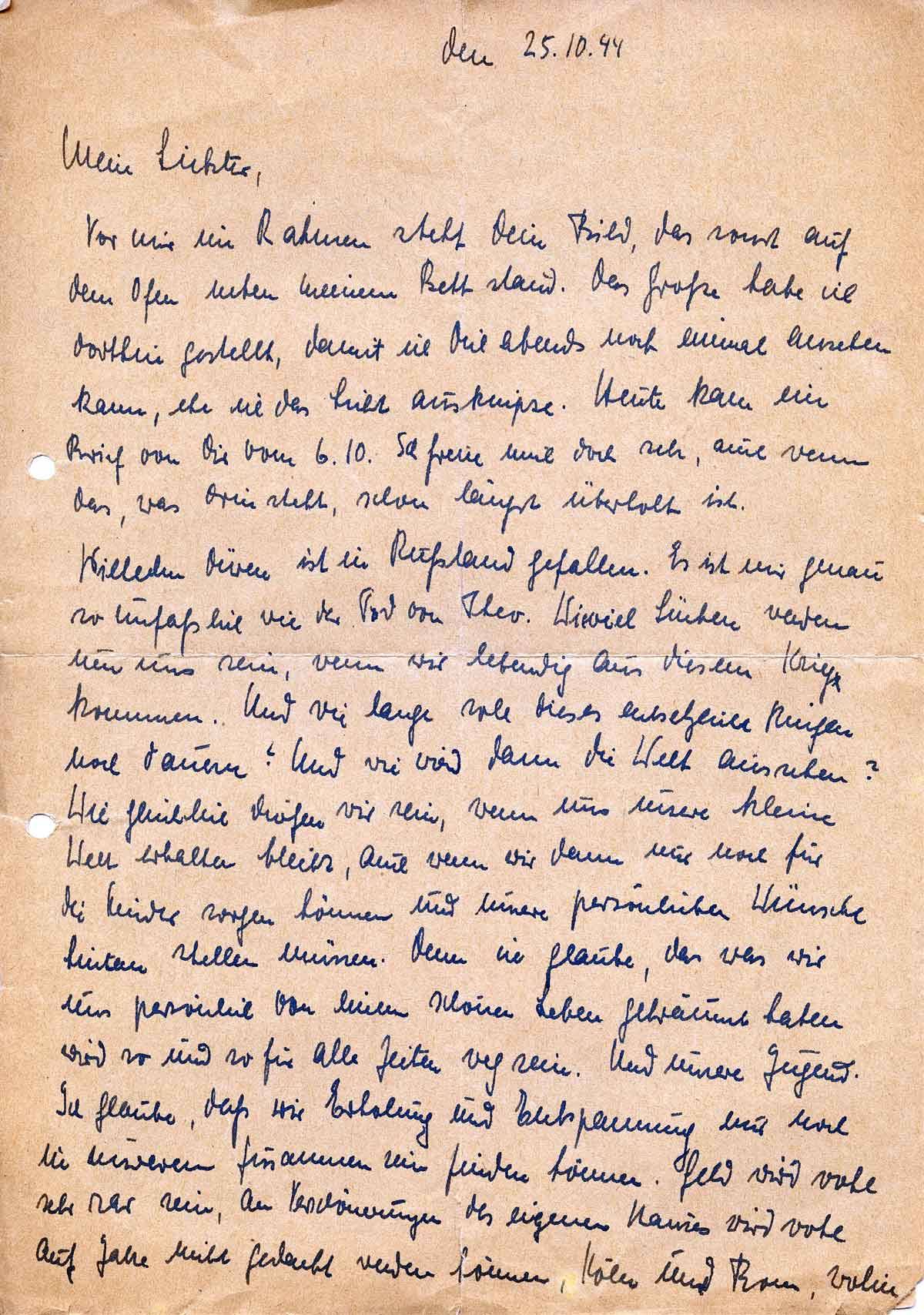 Charlotte Endemann an ihren Mann Harald, 25. Oktober 1944