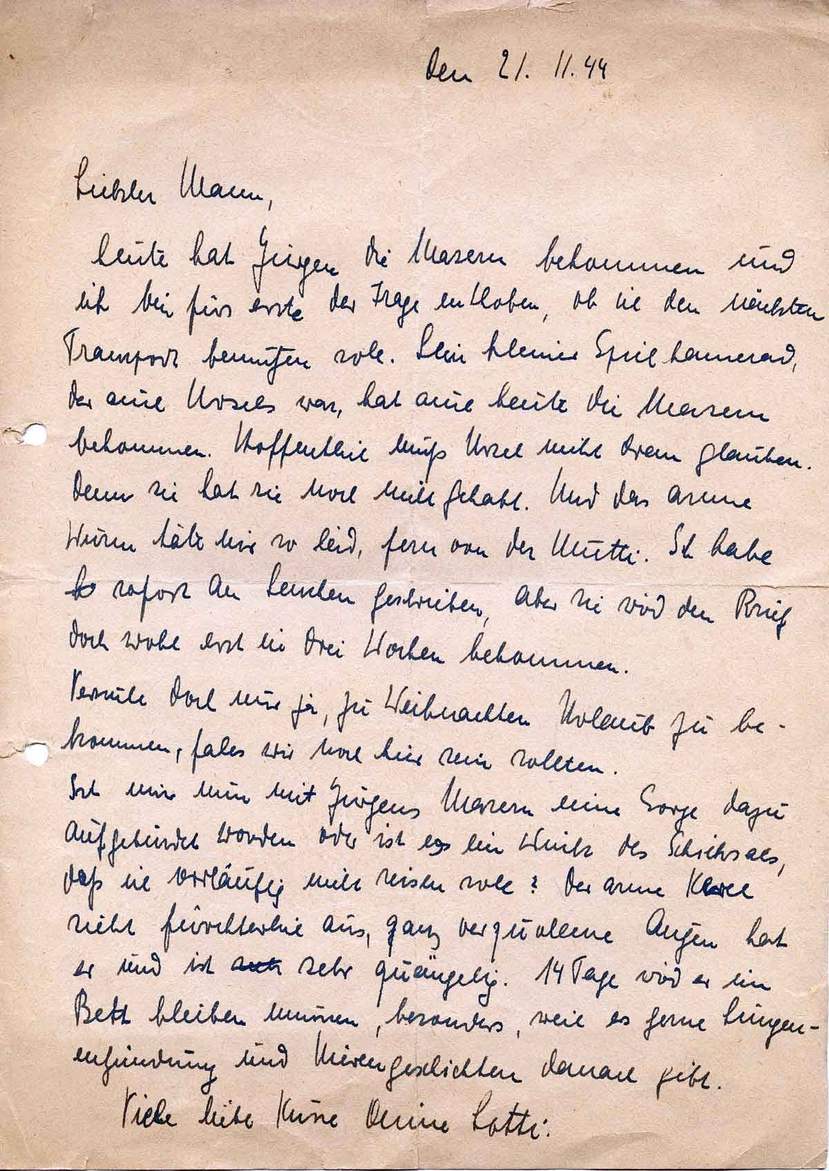 Charlotte Endemann an ihren Mann Harald, 21. November 1944