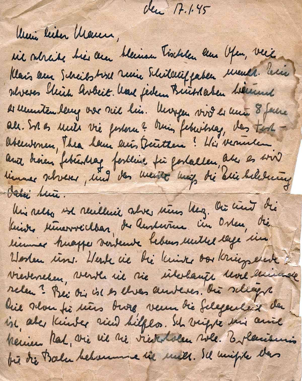 Charlotte Endemann an ihren Mann Harald, 17. Januar 1945