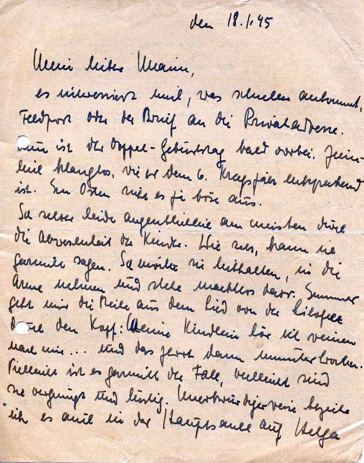 Charlotte Endemann an ihren Mann Harald, 18. Januar 1945