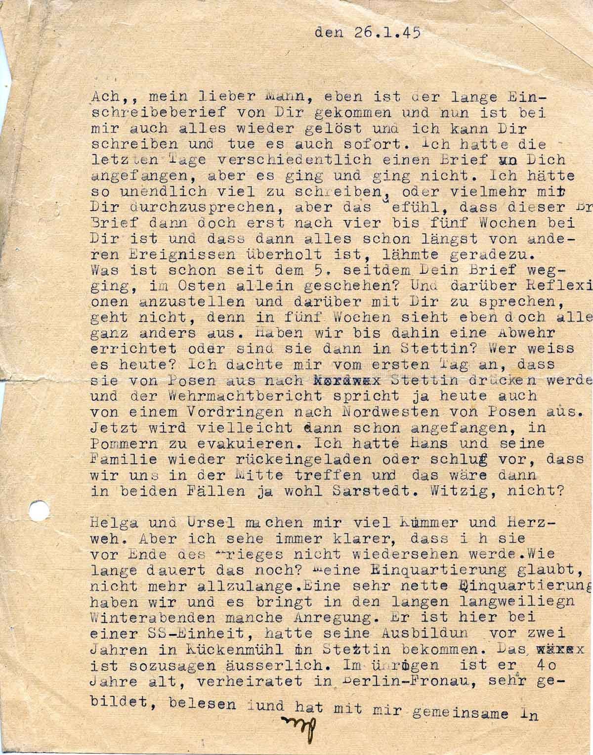 Charlotte Endemann an ihren Mann Harald, 26. Januar 1945