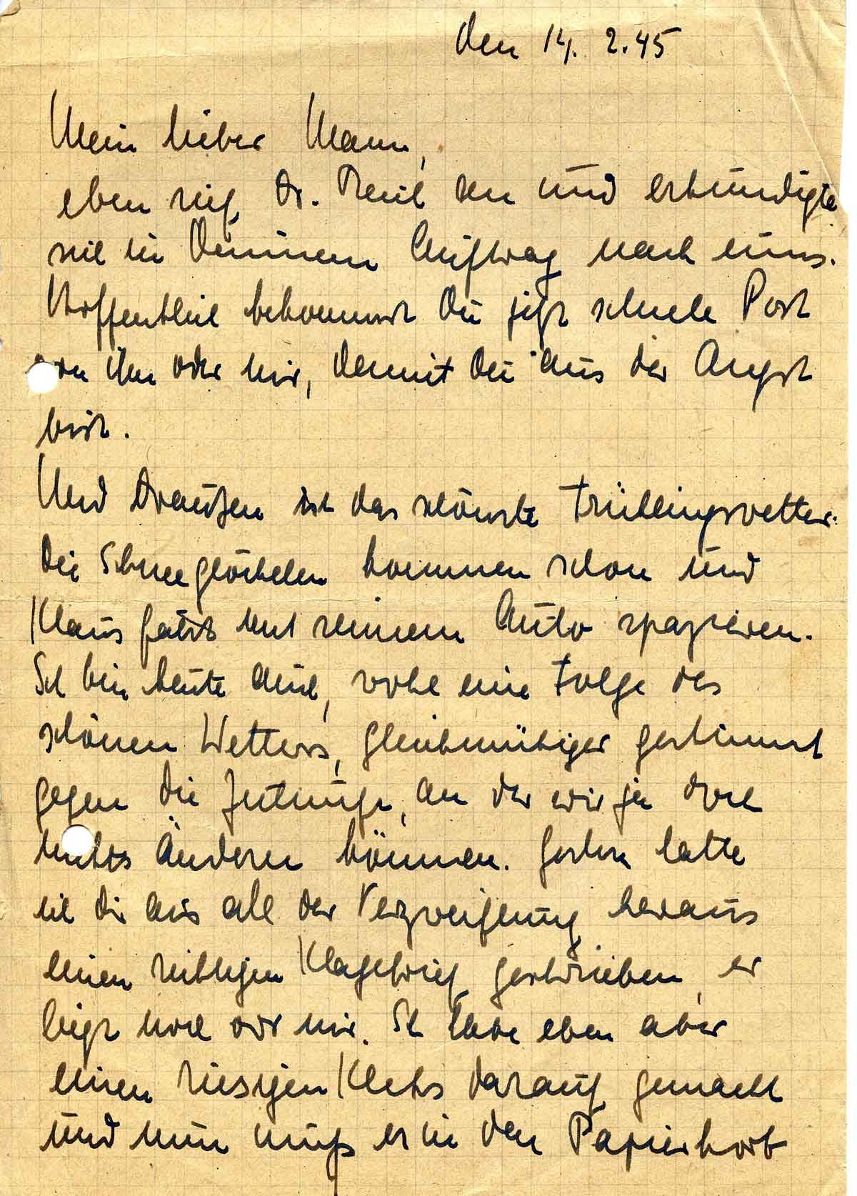 Charlotte Endemann an ihren Mann Harald, 14. Februar 1945