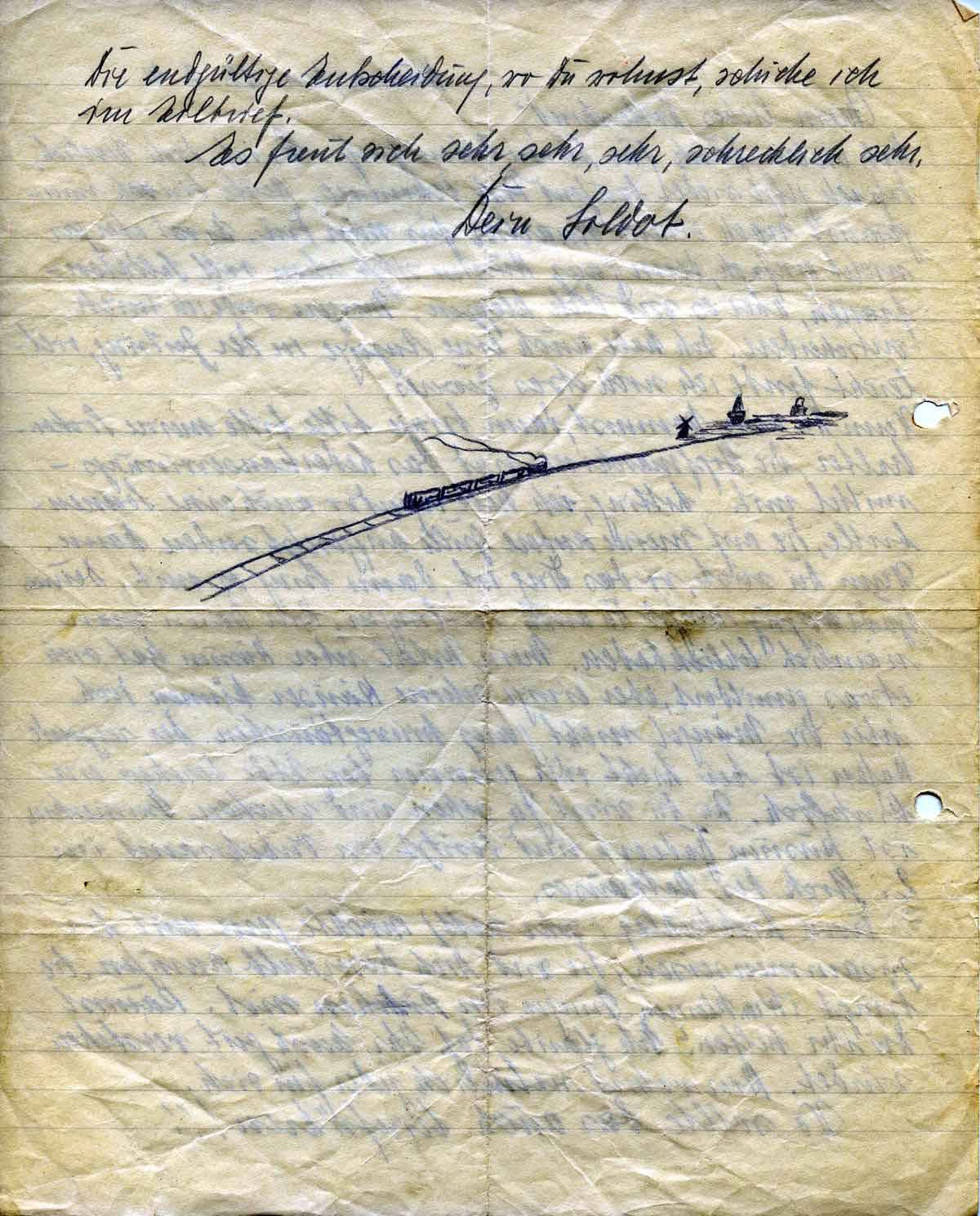 Hab vielen Dank für Deinen lieben Brief. Es ist doch herrlich, dass ich jetzt wieder laufend Post bekomme. Heute bin ich rumgesaust nach einem Quartier für min Fru. Es ist aber gar nicht einfach, denn ganz Husum sitzt schon voll Soldatenfrauen, aber es wird doch klappen. Morgen werde ich mich entscheiden. Ich habe auch eine Anzeige in der Zeitung, vielleicht finde ich noch etwas Besseres.