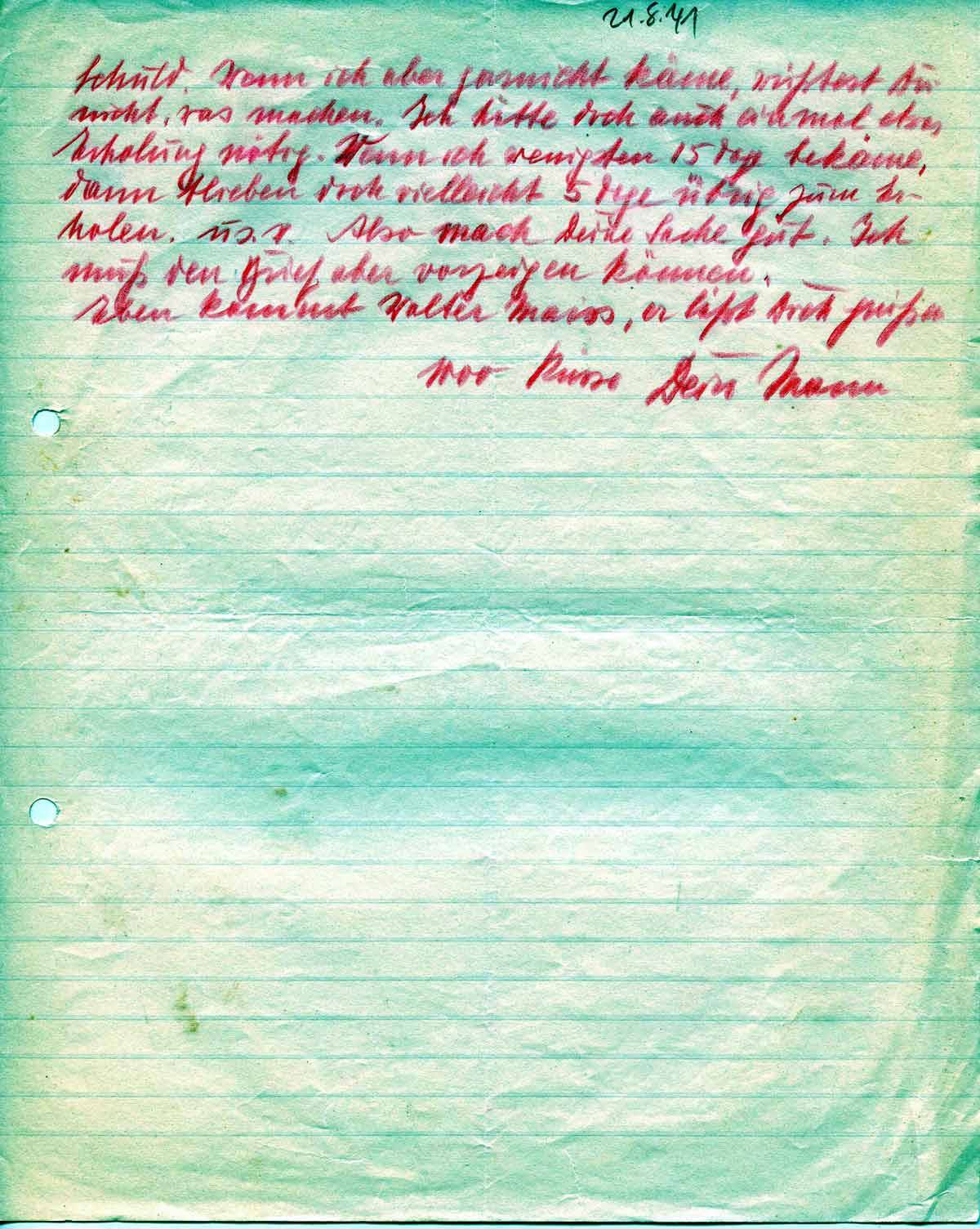 Harald Endemann an seine Frau Charlotte, 21. August 1941