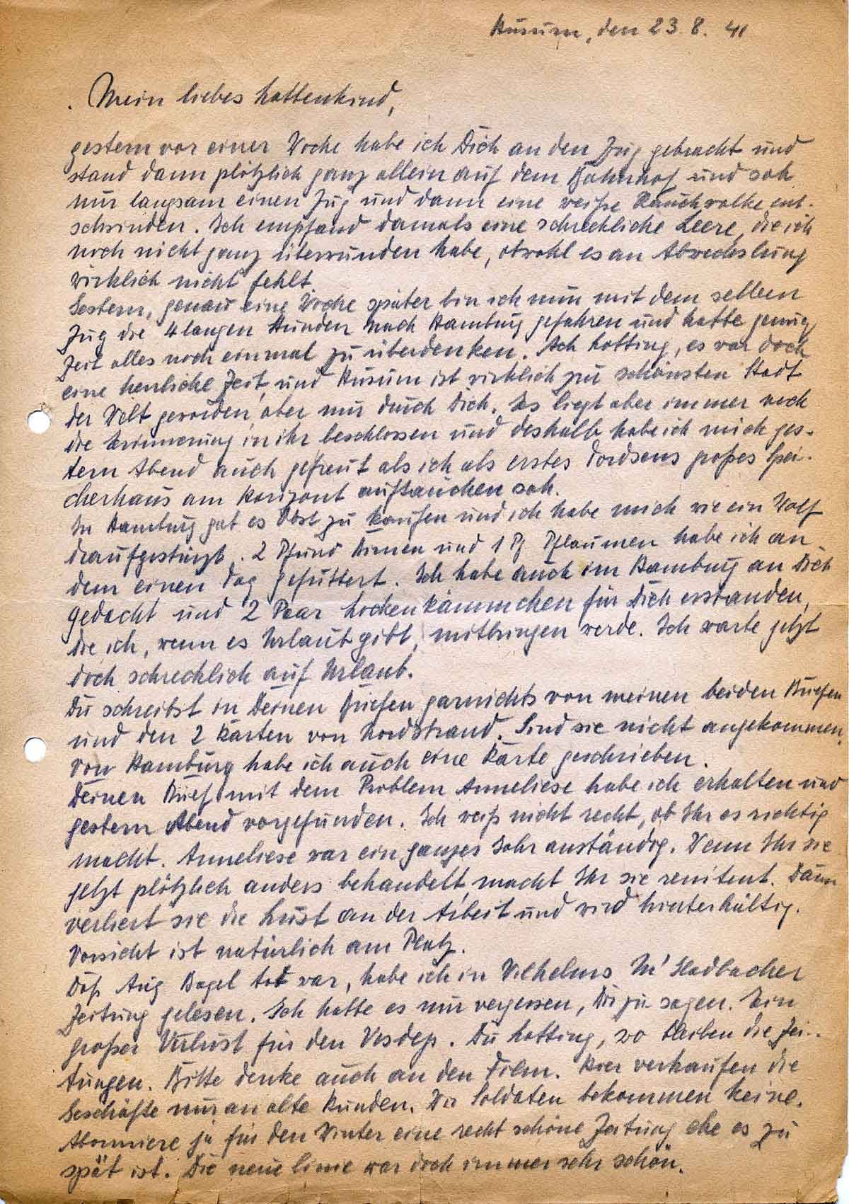 Harald Endemann an seine Frau Charlotte, 23. August 1941