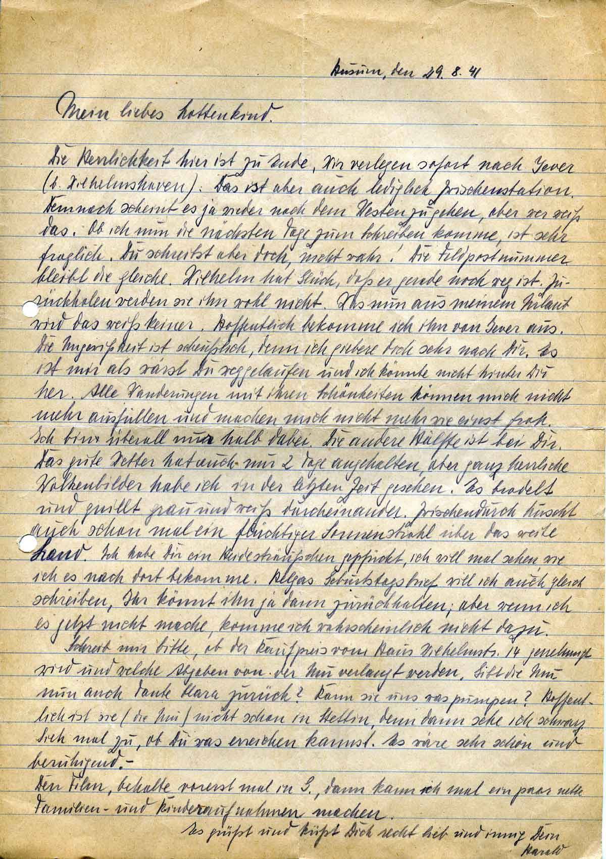Harald Endemann an seine Frau Charlotte, 29. August 1941