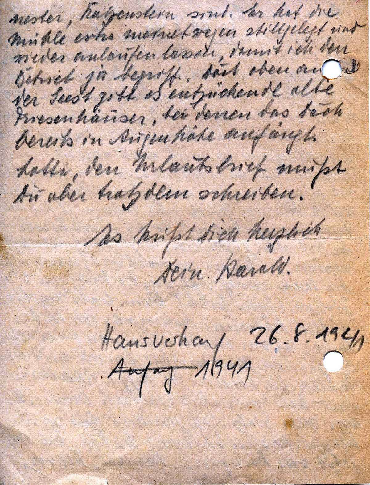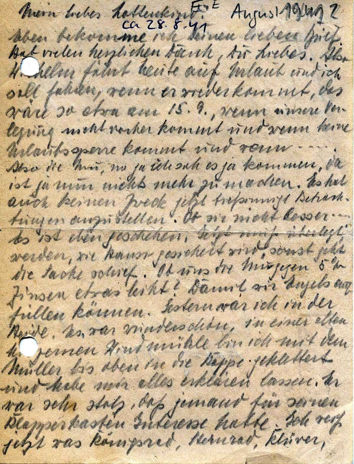 Harald Endemann an seine Frau Charlotte, nach 28. August 1941 (?)