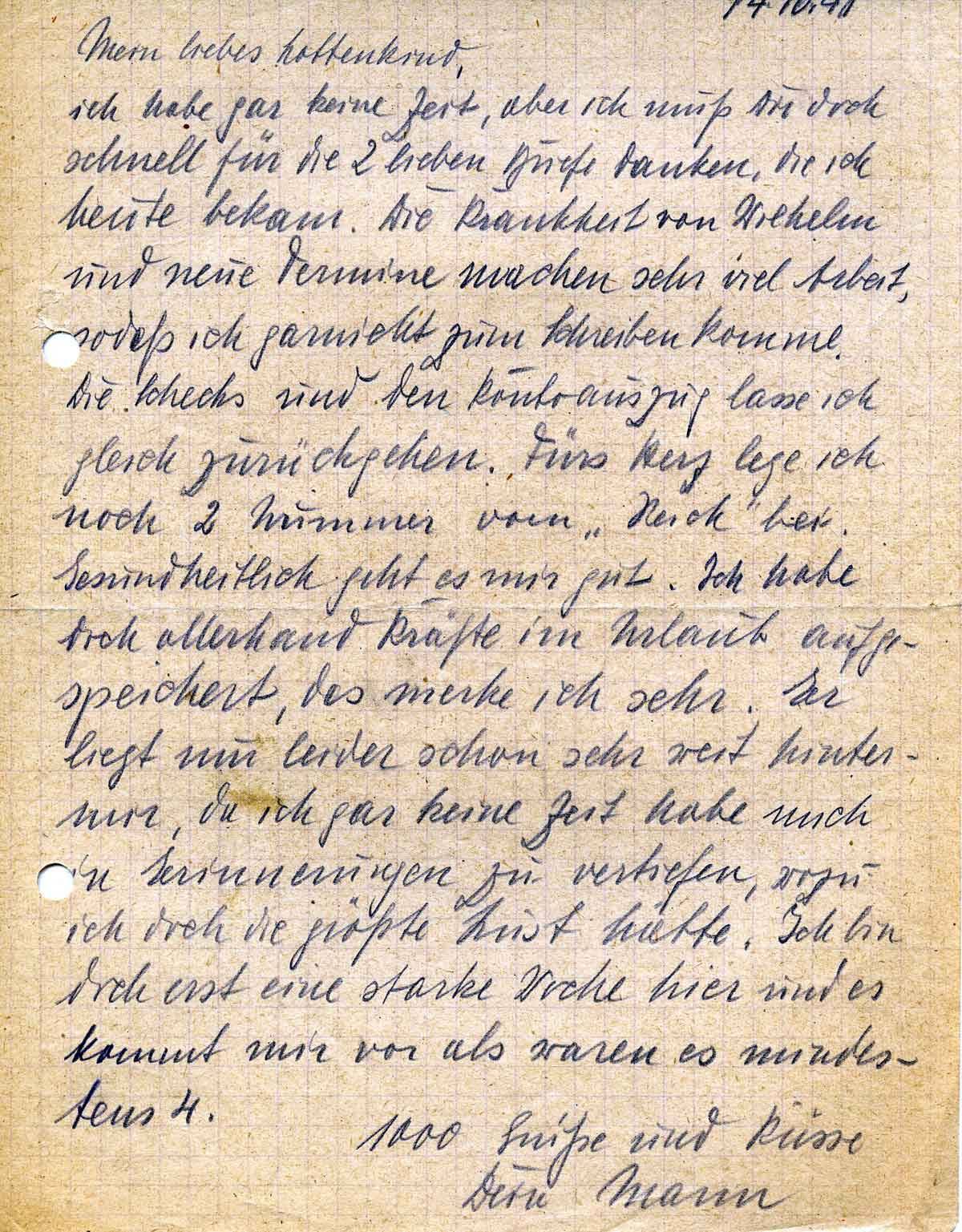 Harald Endemann an seine Frau Charlotte, 14. Oktober 1941