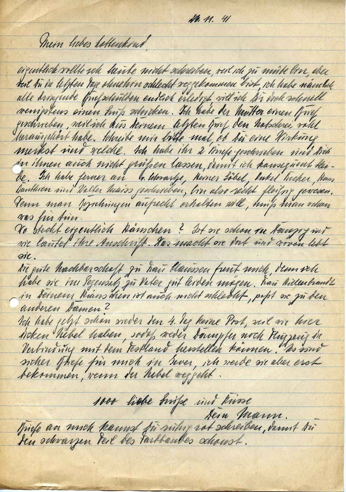 Harald Endemann an seine Frau Charlotte, 20. November 1941
