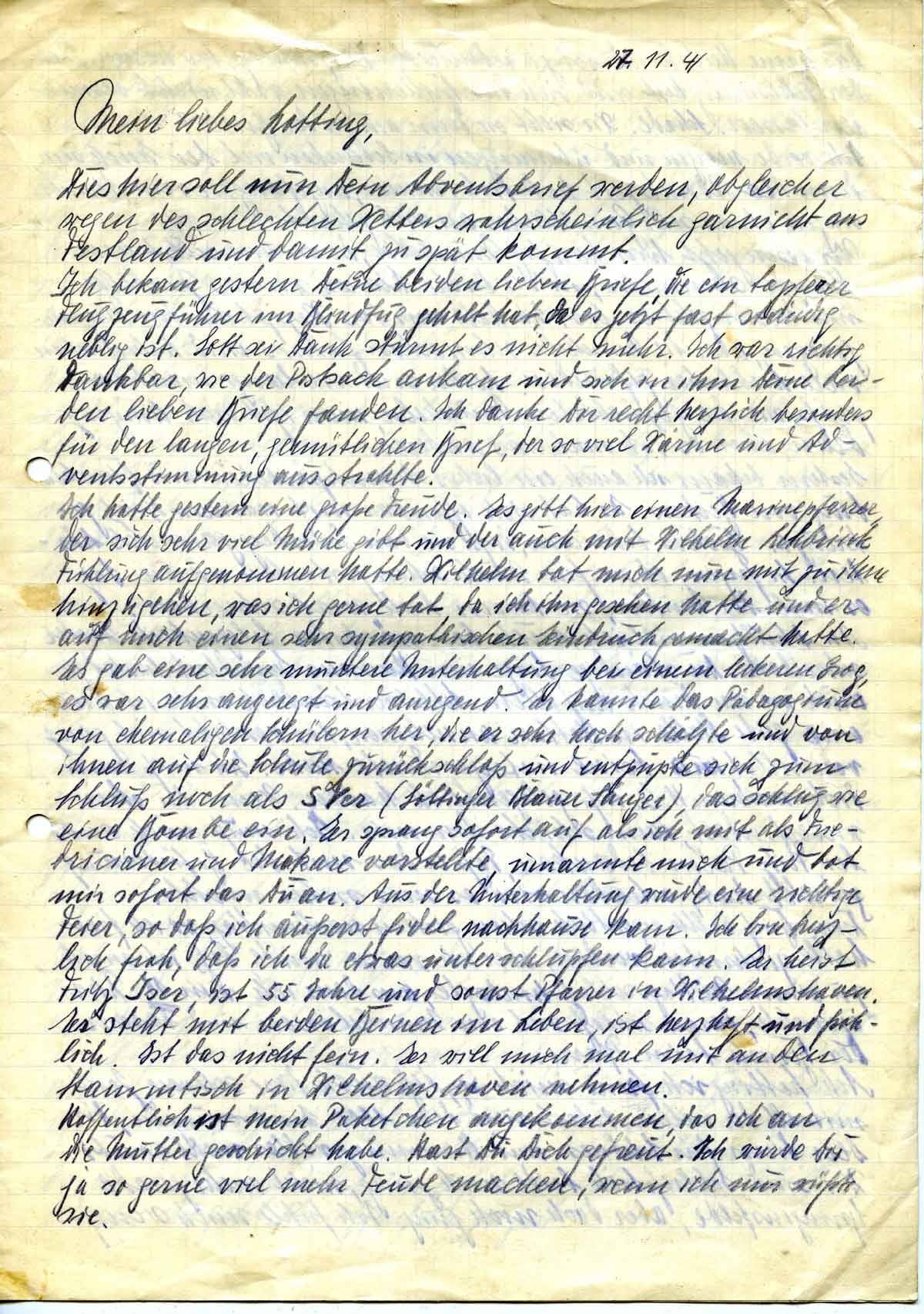 Harald Endemann an seine Frau Charlotte, 27. November 1941
