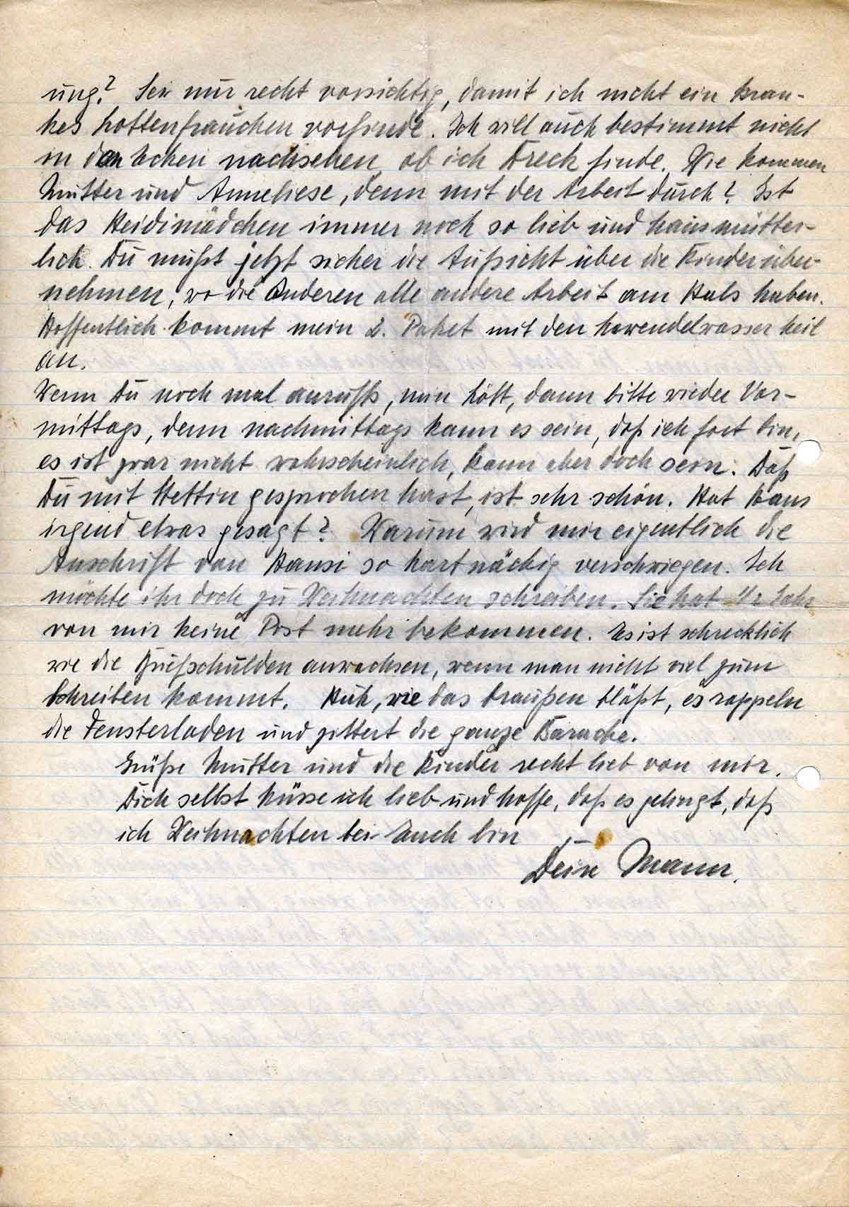 Dich selbst küsse ich lieb und hoffe, daß es gelingt, daß es gelingt, daß ich Weihnachten bei euch bin - Dein Mann.