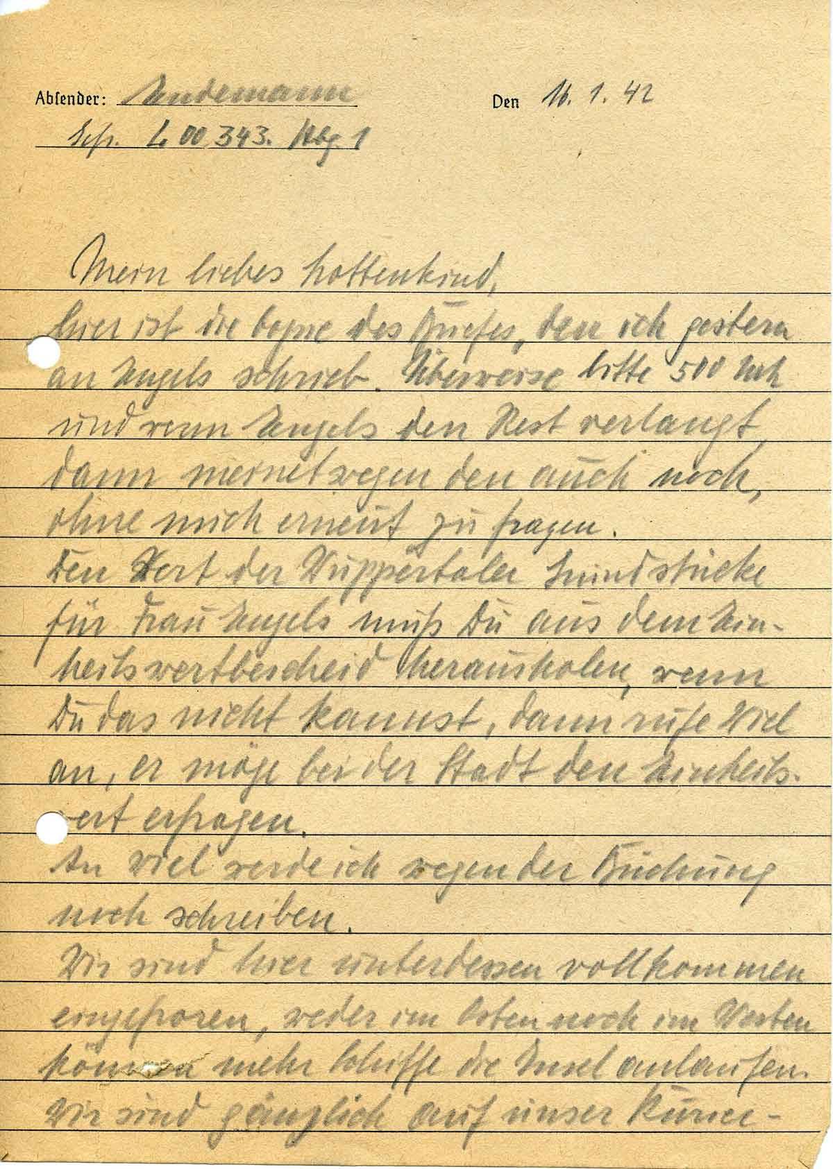 Harald Endemann an seine Frau Charlotte, 16. Januar 1942