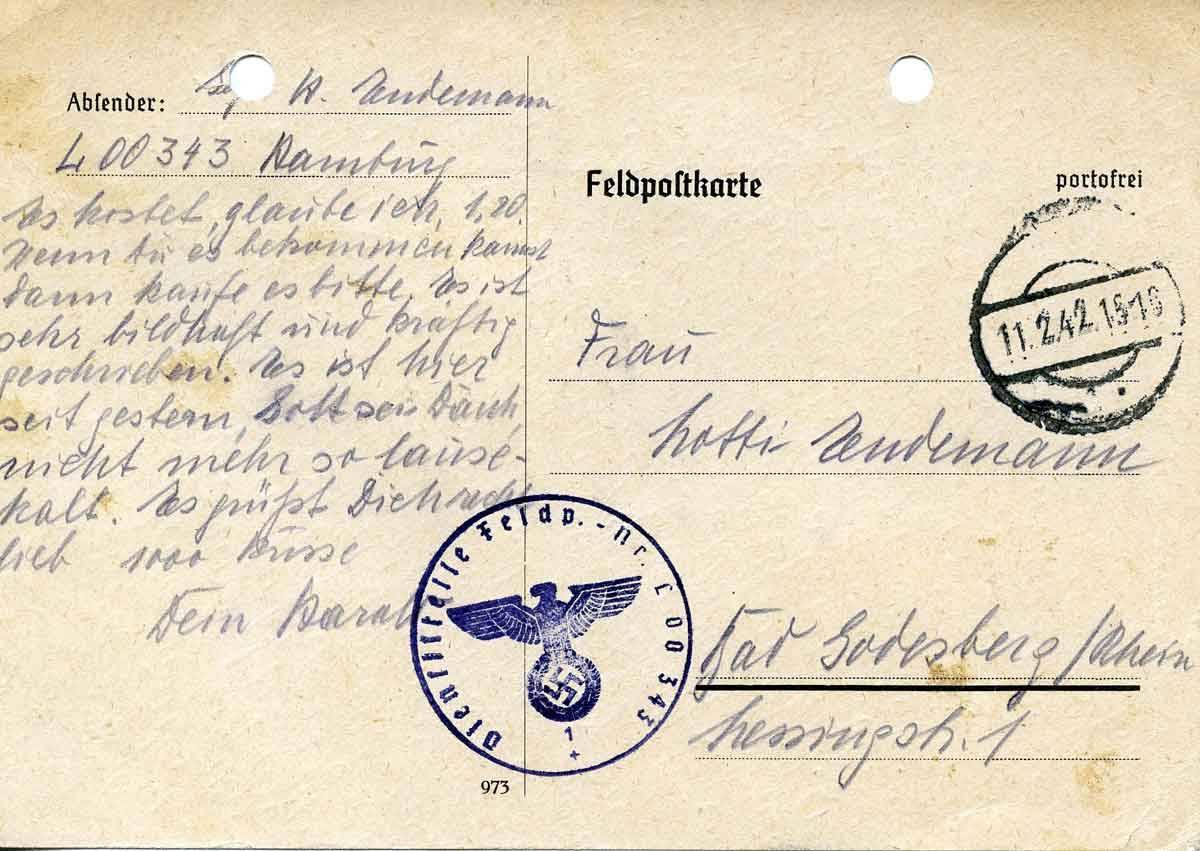 Harald Endemann an seine Frau Charlotte, 11. Februar 1942