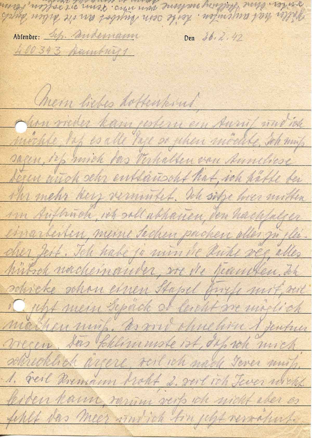 Harald Endemann an seine Frau Charlotte, 26. Februar 1942