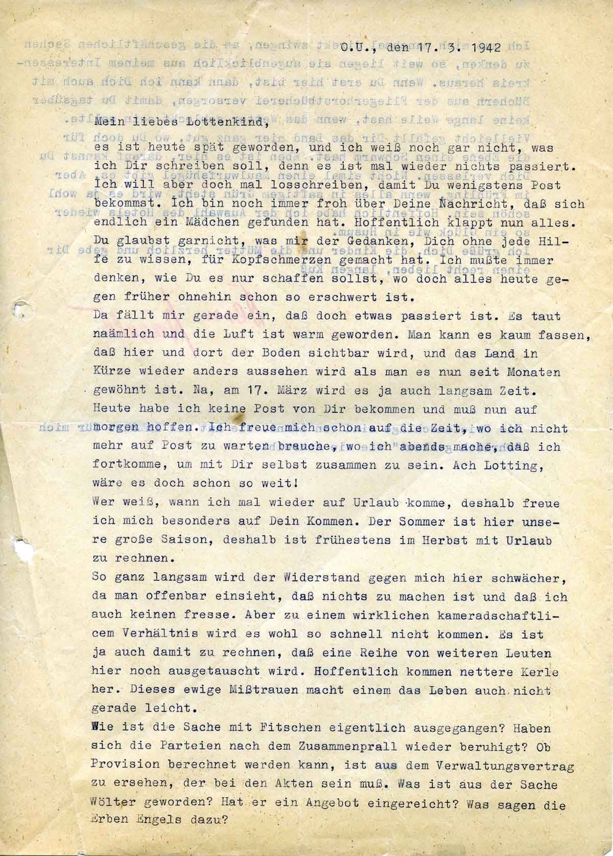 Harald Endemann an seine Frau Charlotte, 17. März 1942