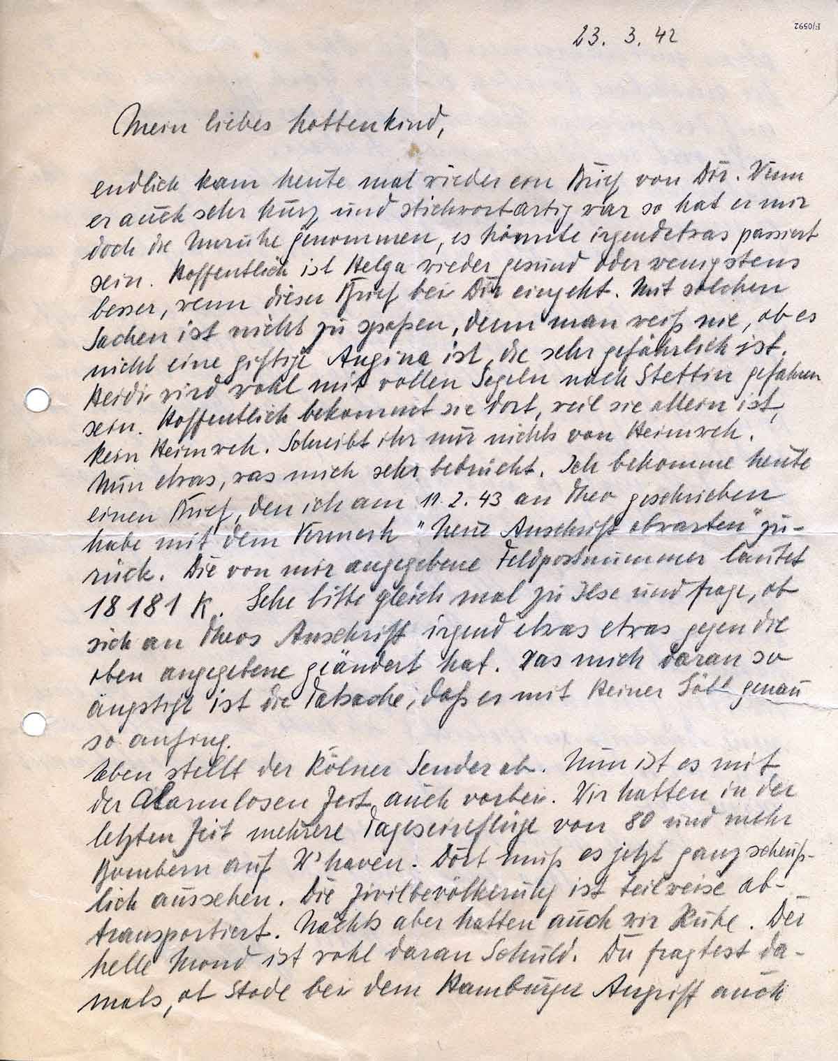 23.3. 42 [Datum fraglich, evtl. 1943?]