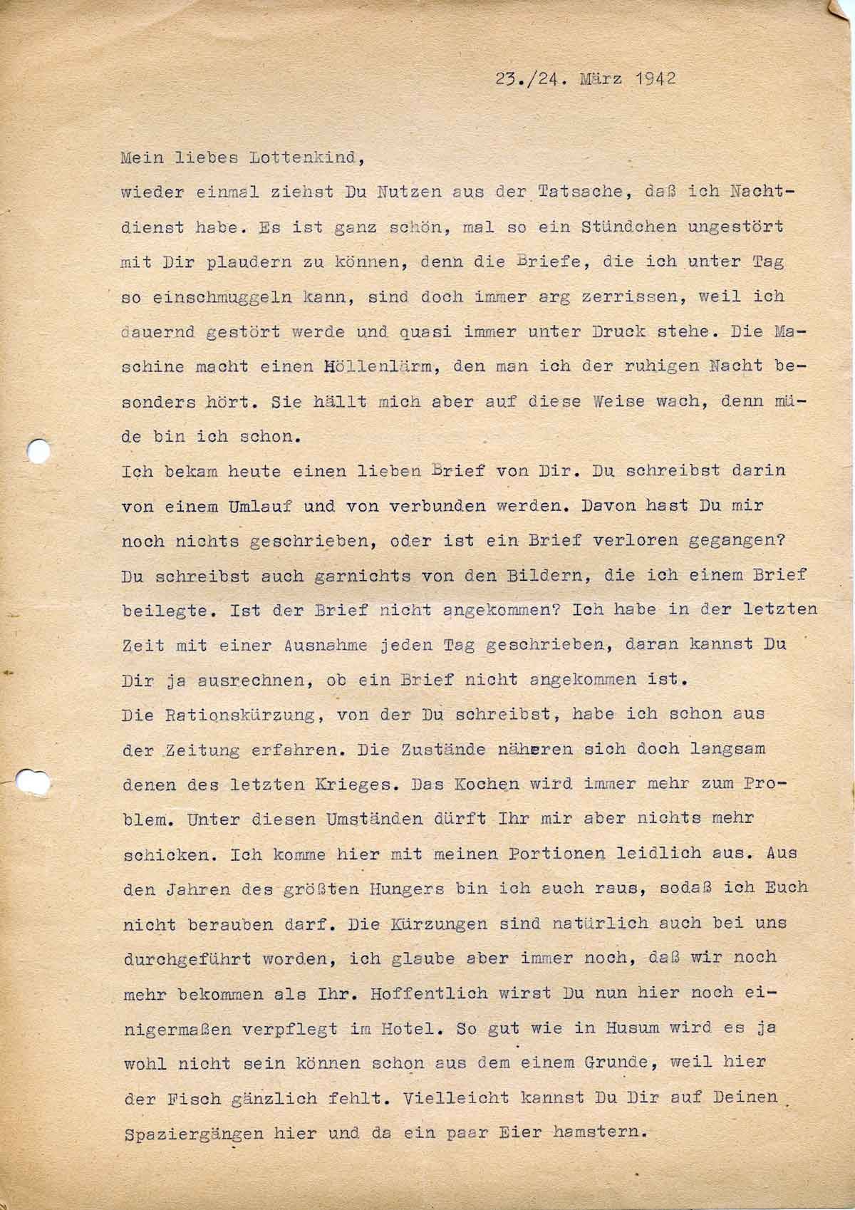 Harald Endemann an seine Frau Charlotte, 23./24. März 1942