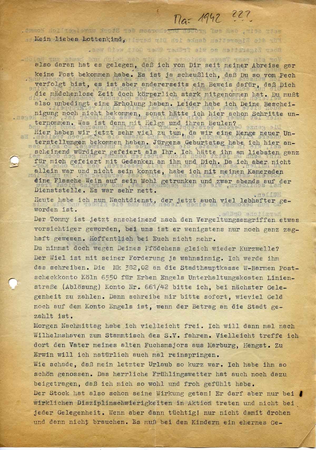 Harald Endemann an seine Frau Charlotte, Mai 1942 (?)