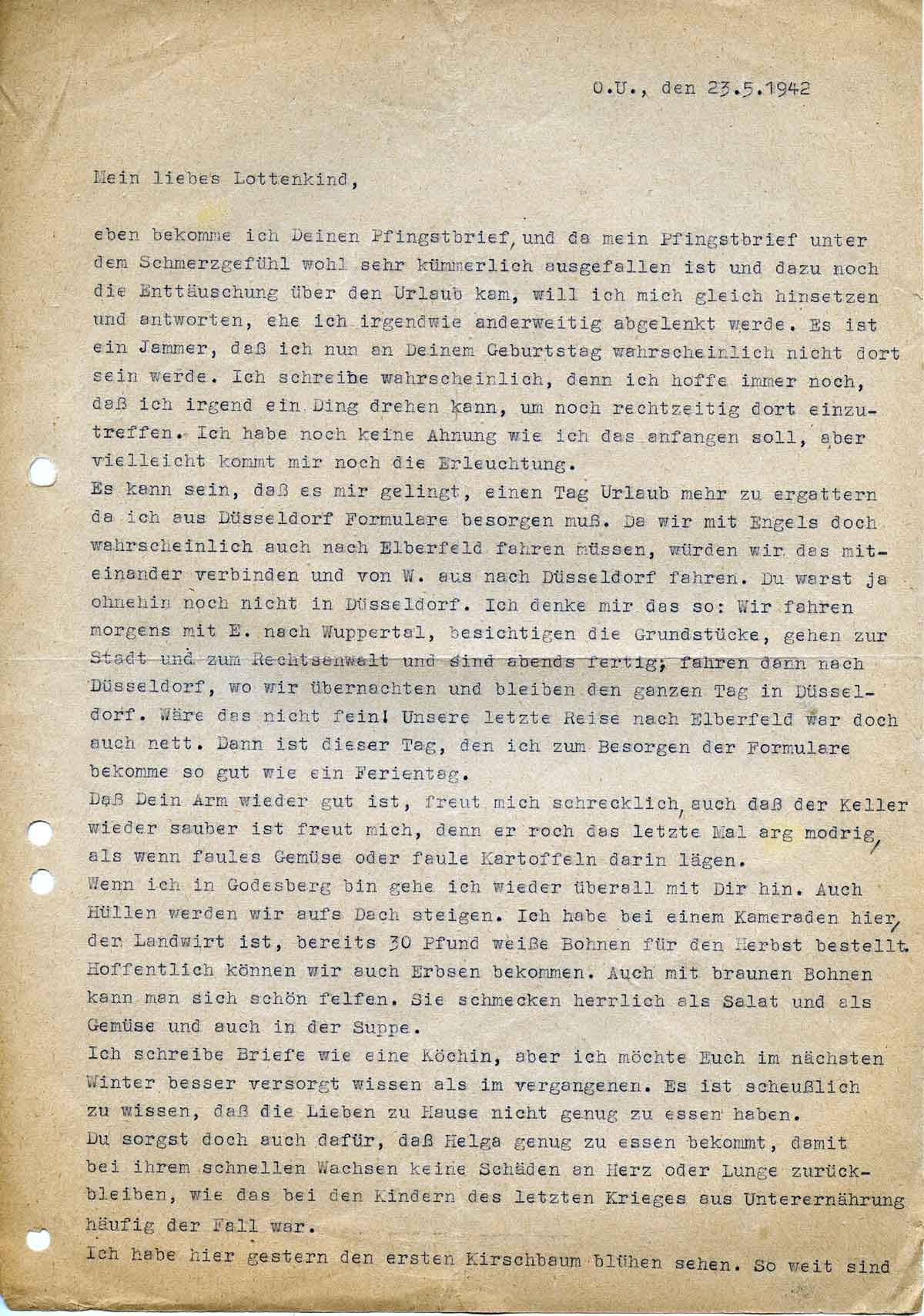 Harald Endemann an seine Frau Charlotte, 23. Mai 1942
