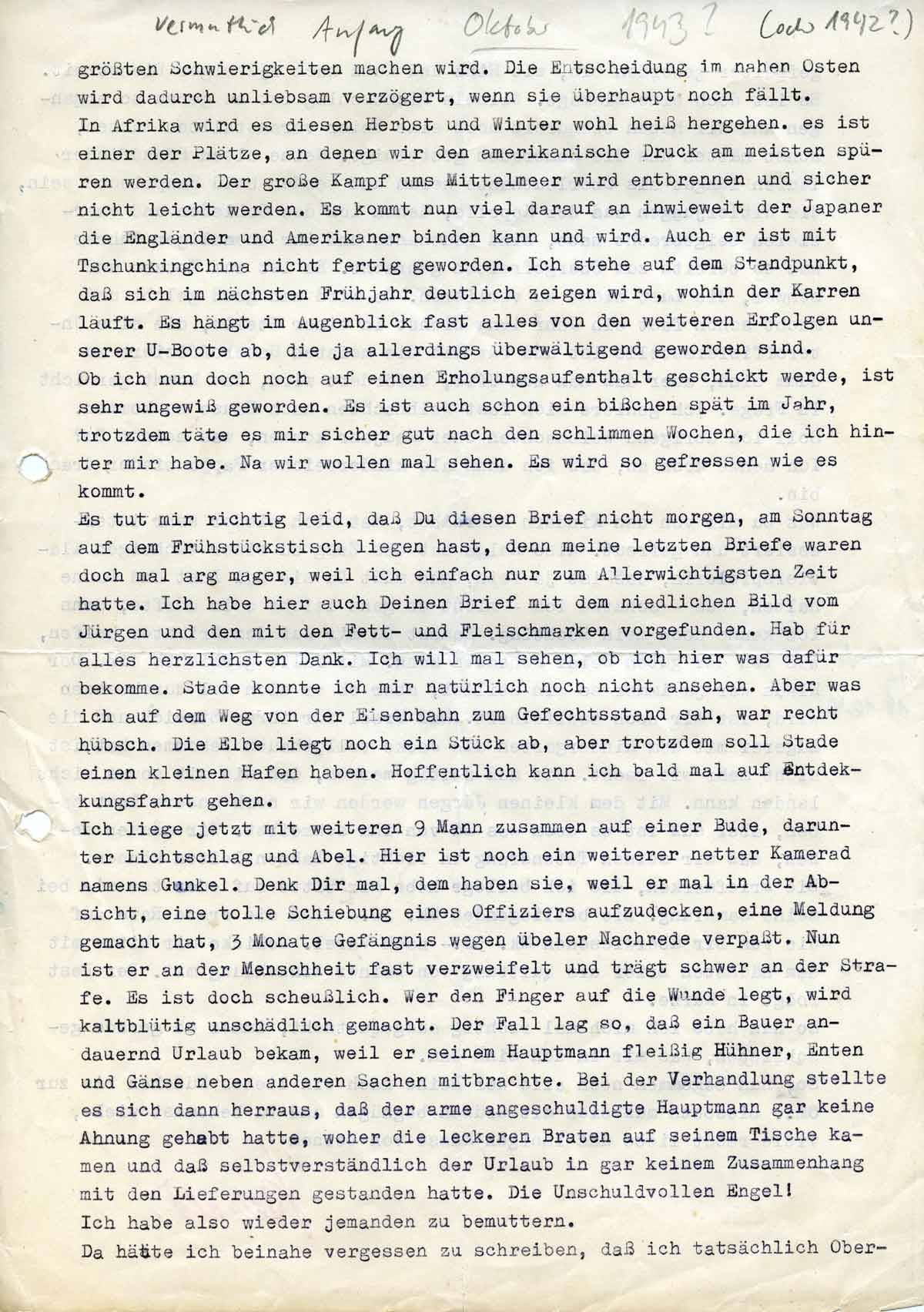 Harald Endemann an seine Frau Charlotte, 3. Oktober 1942