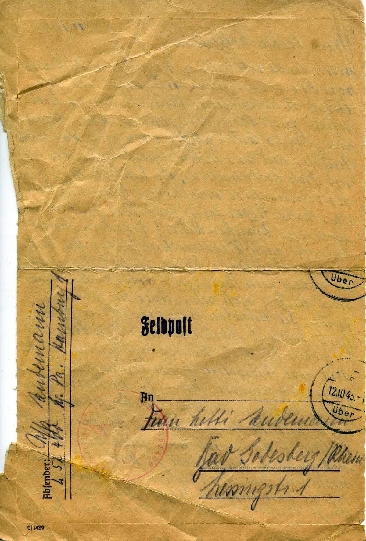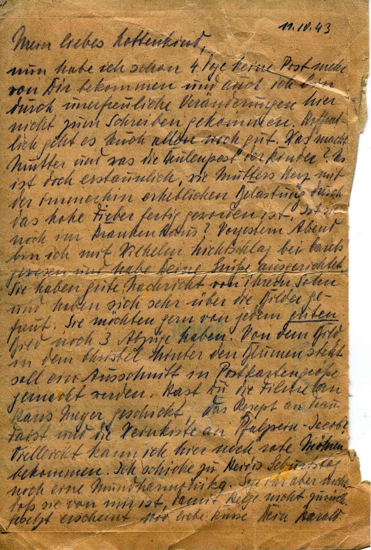 Harald Endemann an seine Frau Charlotte, 11. Oktober 1943