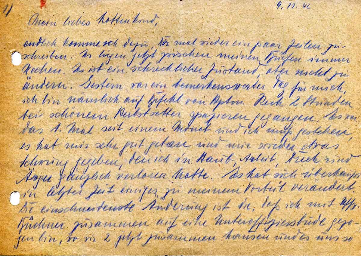 Harald Endemann an seine Frau Charlotte, 9. November 1942
