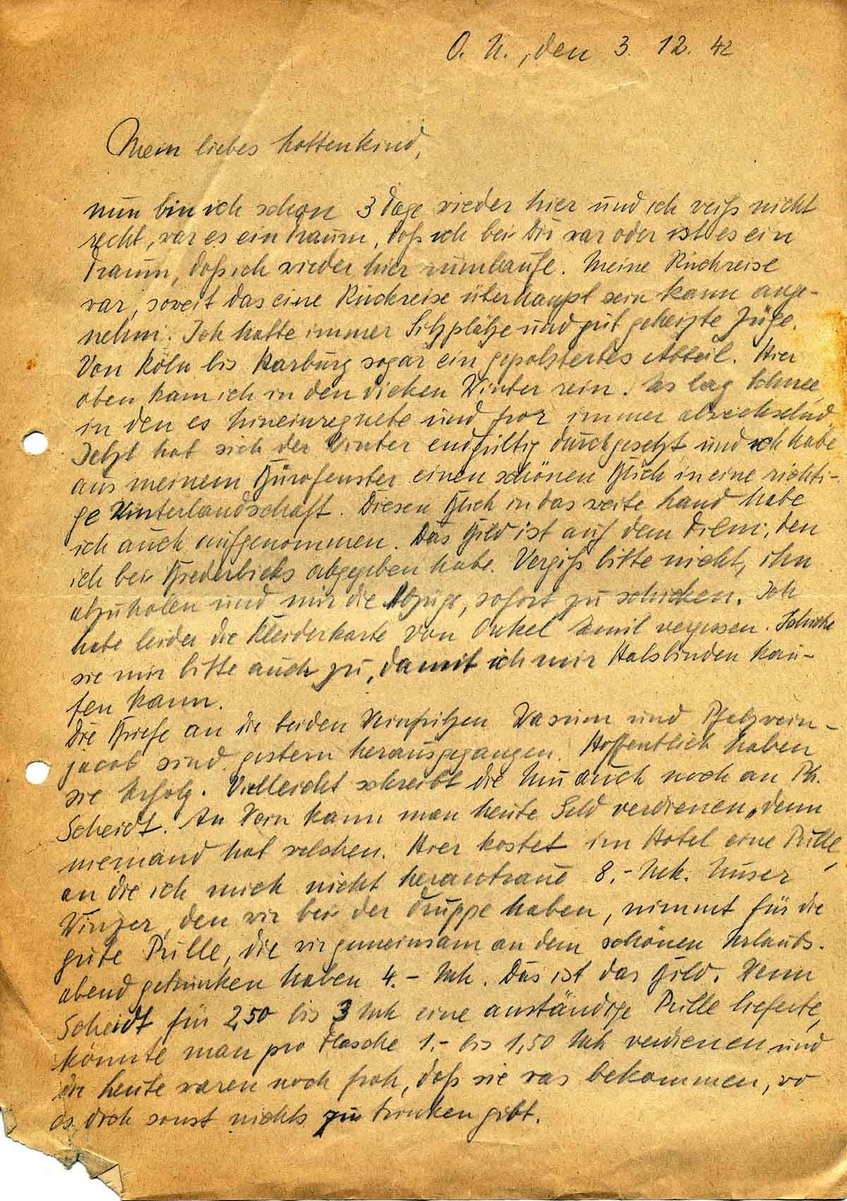 Harald Endemann an seine Frau Charlotte, 3. Dezember 1942
